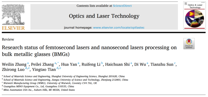 近日,上海工程技術大學材料科學與工程(chéng)學(xué)院張培磊教授(shòu)領導的國際研究(jiū)團隊,在光學與(yǔ)激(jī)光領域著名期刊Optics & Laser Technology發表題為“Research status of femtosecond lasers and nanosecond lasers processing on bulk metallic glasses (BMGs)”的綜述論文(了解詳情點擊閱讀原文)。