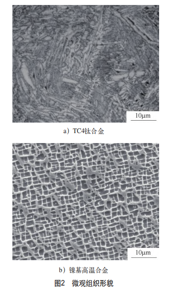 為了滿足(zú)在高溫(wēn)高壓環境下的穩定服役要求,航空發動機葉片常用材料為鈦合金或高溫合金(jīn),近年來,鈦鋁金屬間化(huà)合物也成為一種極有應用潛力的葉片材料。鈦合金具有導熱(rè)性(xìng)低、塑性(xìng)低、彈性模量低以及親合力強等特點,使其切削過程中出現切(qiē)削力大、切削溫度高、加工硬化嚴重和(hé)刀具磨損大(dà)等問題,是典型的難加工材料(微觀組織形貌見圖2a)[7]。高溫合金的主要(yào)特點是(shì)塑性及強度高,導熱性差,並(bìng)且內部含有大量致密(mì)的固溶體(tǐ)[8]。在切削過程中塑性變形使得晶格嚴重扭曲,變形抗力大,導致切削力大並(bìng)伴隨嚴重的冷硬現象,也(yě)是典型(xíng)的難加工材(cái)料(微觀組(zǔ)織形貌見圖2b)。因此,研發鈦合金與(yǔ)高溫合金等難(nán)加工材(cái)料的高效精密(mì)切削技術至關重要。為了實現難加工材料的高效精(jīng)密加工,國內外學者從(cóng)創新切削加工方法、優選加工刀具材料(liào)以及優化切削參(cān)數等方向進行深(shēn)入(rù)研(yán)究。