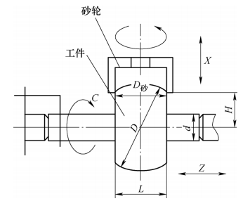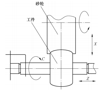 2)運(yùn)動:在磨削過程中,工件按C向轉動,砂輪(lún)高速回轉,並且沿X軸進(jìn)給,不能在Z軸上移動。