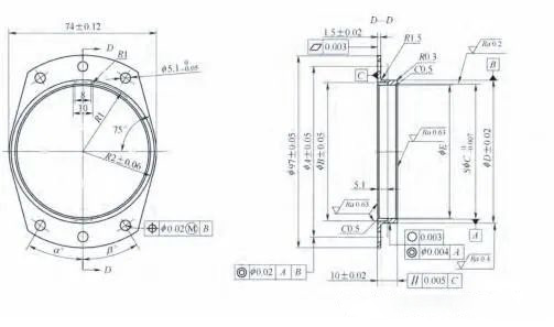 法蘭盤零件精度要求極高,尺寸相對較大,去除餘量較多(duō),壁厚較薄,剛性較差,材質易變(biàn)形,加(jiā)工製(zhì)造過程中存在合格率偏低、質量不穩定等問題,是非常典型的高精度、高要求難加工零件。