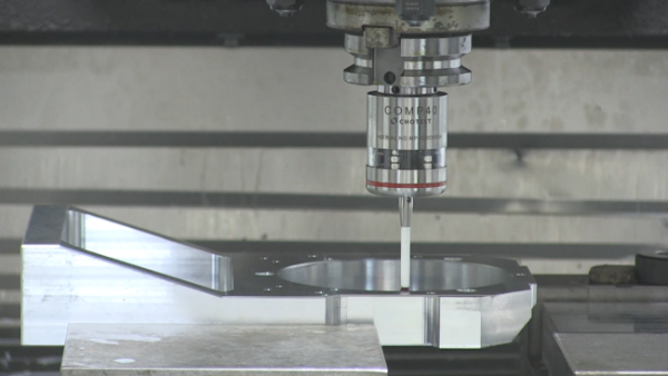 安裝測頭完成之(zhī)後,啟動測量(liàng)程序,測頭會依次(cì)觸碰工件各(gè)邊一點,並記錄當前點的機(jī)械坐標,機(jī)床係(xì)統自動計算工件中心,保證了(le)加工零(líng)點的正確,從而改善工件(jiàn)精(jīng)度。
