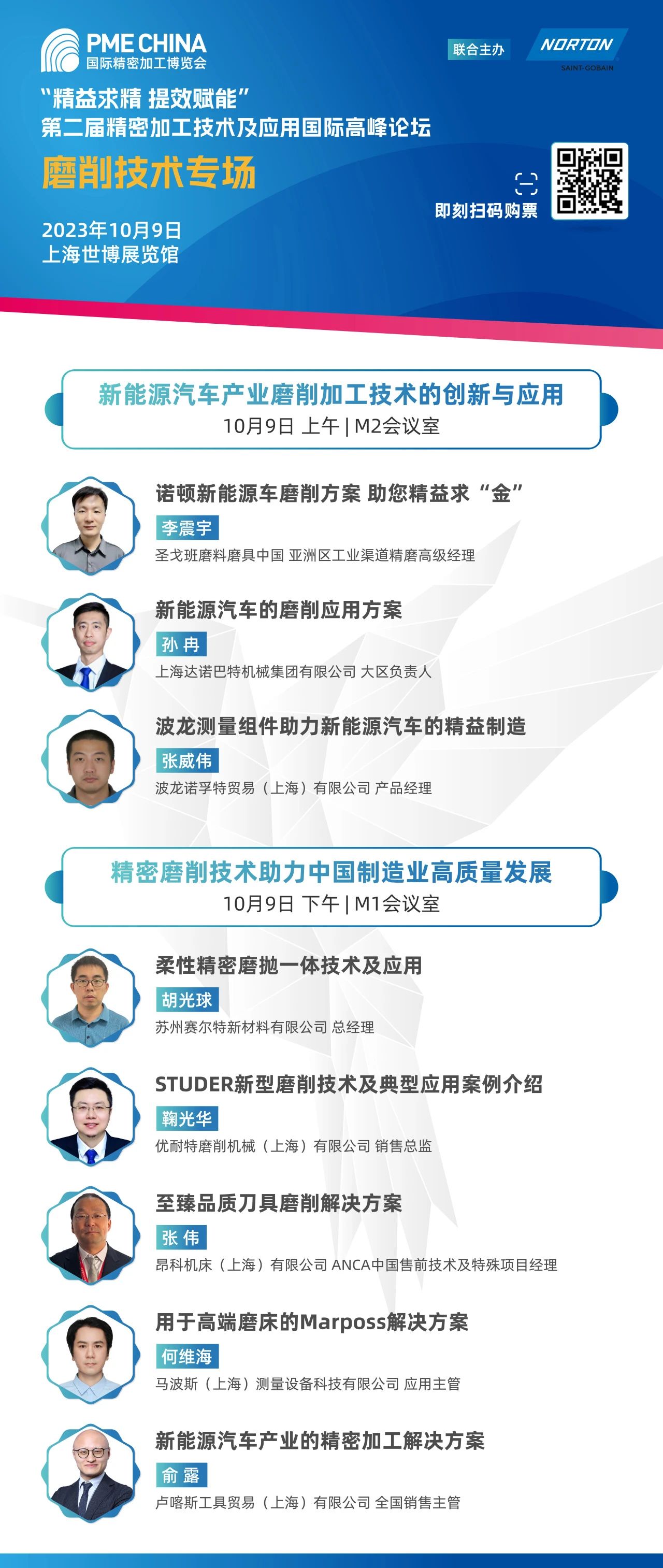 “精益求精,提效賦能(néng)”第(dì)二屆精密加工(gōng)技術及應用國際高峰(fēng)論壇(tán)即將盛大開幕!本期揭曉“磨削技術專場(chǎng)”議題,敬請關注10月9日上午“新能源汽車產業磨削(xuē)加工技術的創新與應用”論(lùn)壇和10月9日下午“精密磨削技術(shù)助力中國製造業高質量發展”論壇(tán),論壇詳情請看下圖~