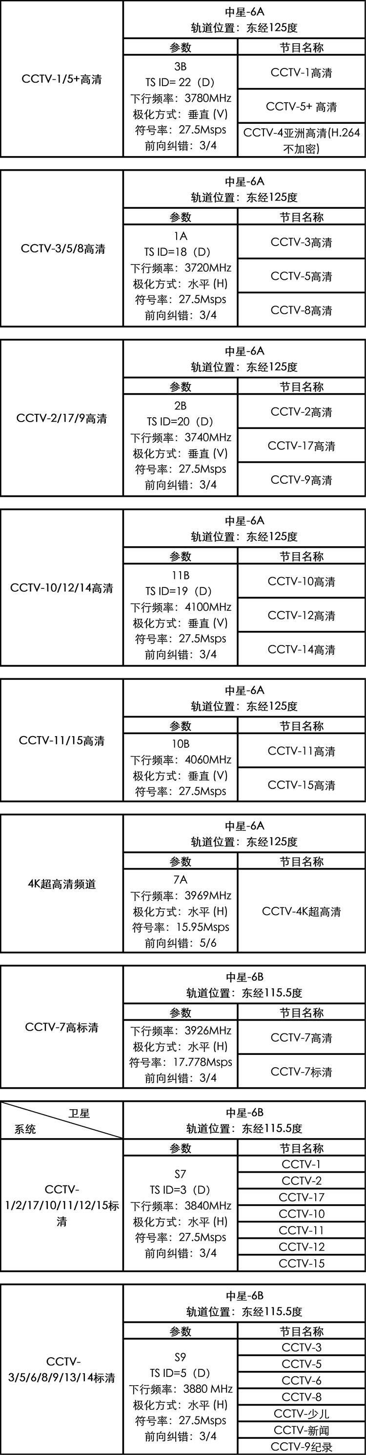 中央電視台公共頻道參數