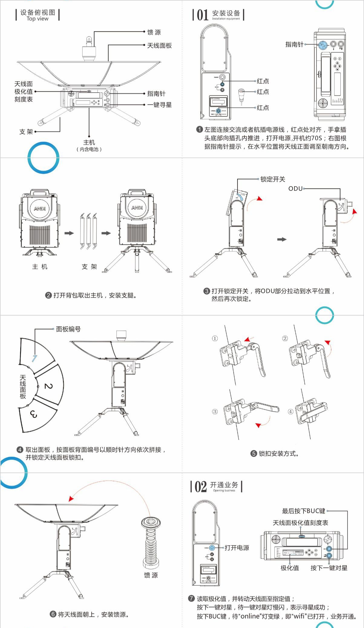 超輕型 Ku頻段便(biàn)攜衛星通信站操作方式簡單,人機交互友好,沒有類似專業(yè)知(zhī)識的普通人員在經過簡單的培(péi)訓後即可操作設備完成設備的部署工作。設備隨機附帶(dài)操作(zuò)指(zhǐ)南圖,操作人員可(kě)隨時根據圖示操作,大大降低了設備對現場工作人員(yuán)的專業技能要求(qiú)。